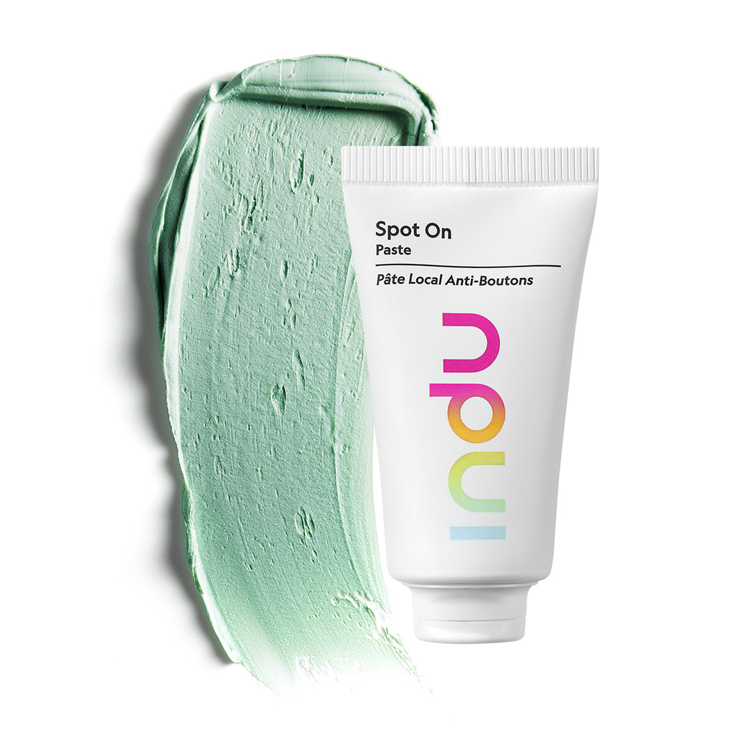 Absolutely. After cleansing, make sure you put a super-light layer of Spot On Paste over the spot, then once it has dried down, you can apply makeup or concealer over it. What’s great about its soft green shade is that it has added colour-correcting capabilities, so it’s not so obvious and can tone down any redness.